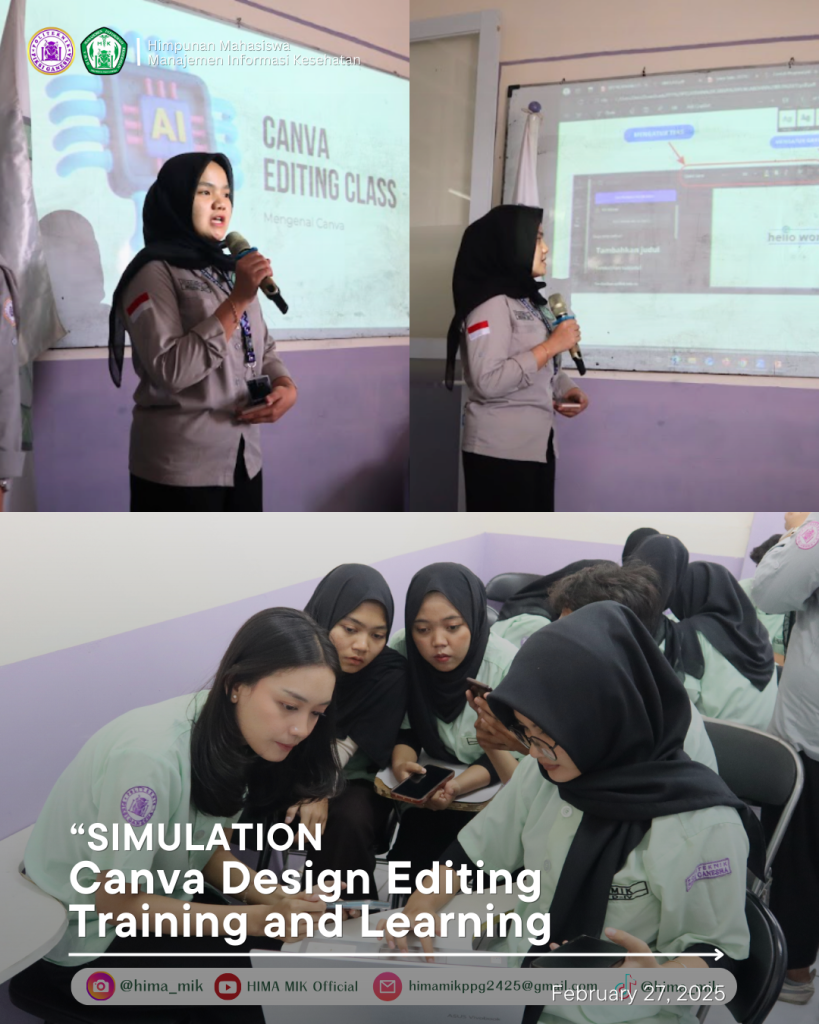 The Simulation (Canva design editing training and learning), held offline on September 06, 2025, at Piksi Ganesha Polytechnic, is a response to the increasing importance of digital literacy and visual communication skills in academic and professional settings. In an era where visual content dominates information sharing, the ability to design engaging and informative materials has become a valuable asset for students and educators alike. Canva, as a user-friendly and accessible design platform, offers a practical solution for creating high-quality designs without requiring advanced technical knowledge.